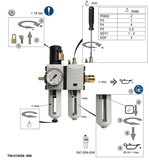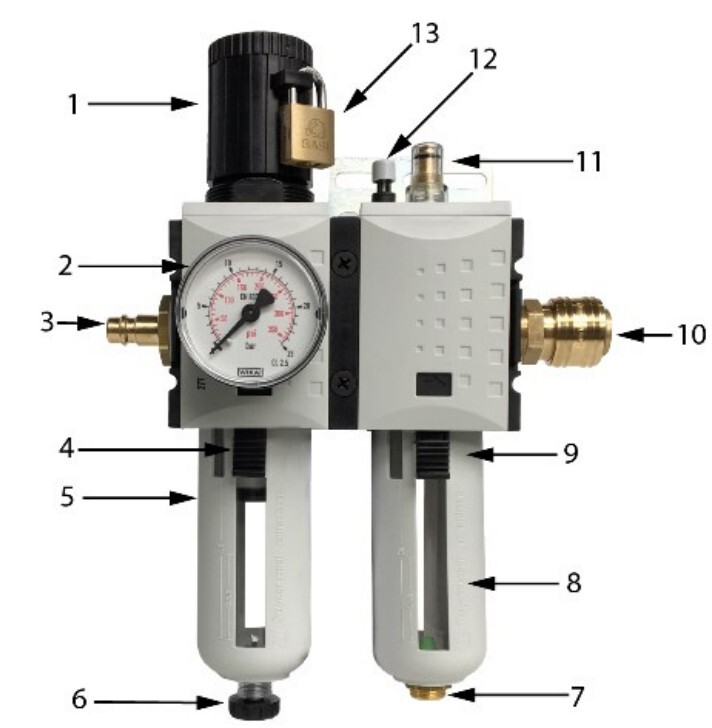 1/2" filter regulator lubricator unit with lockable pressure control