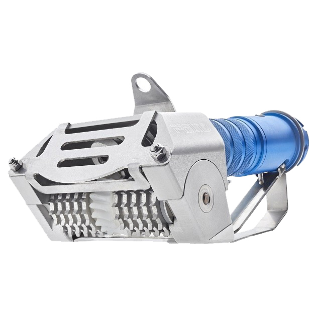 Quick Blade-Change mechanism for tool-free blade replacing, high operational safety less downtime, less maintenance work, no losable parts, Powerful pneumatic-motor "Made in Germany" allows oil-free air supply (more power with oil), Hygienic Design, no dead spaces where dirt and dust collects, easy wash-down, Easy to maintain, easy assembling with slot-screwdriver, all parts of the tooth roller individually replaceable, variable trigger position, easy adjustment for individual, operation or for right and left handers.