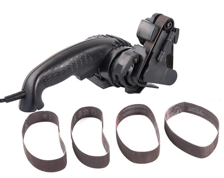 Uses standard 3/4" x 12" abrasive belts for easy replacement and ongoing availability.