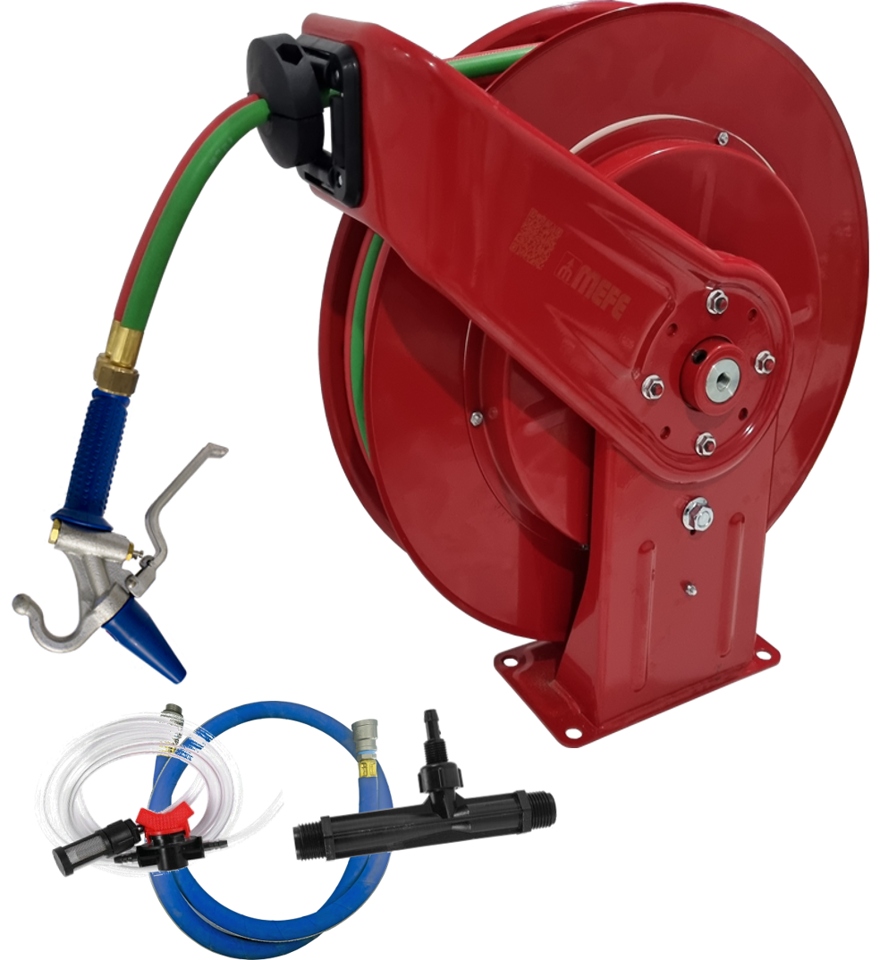 Reel type: Spring retractable automatic twin hose reel